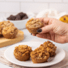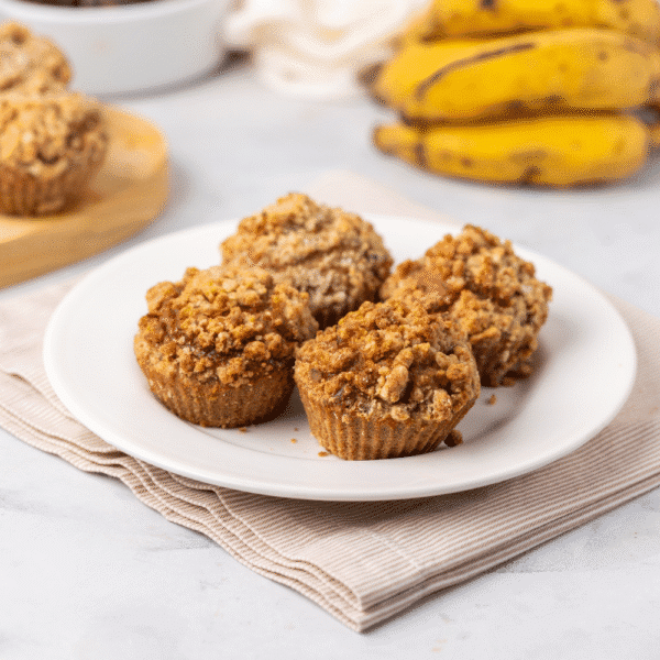 Ingredientes: Água, banana, mix de farinhas sem glúten (farinha de arroz integral, fécula de batata e goma xantana), farinha de aveia, tâmara, óleo de coco, fermento químico, maçã em pó e canela em pó. Embalagem com 4un Congelado SEM AÇÚCAR | SEM ADOÇANTE | SEM LEITE | SEM TRIGO | SEM OVO SEGURO PARA APLV E ALÉRGICO AO OVO