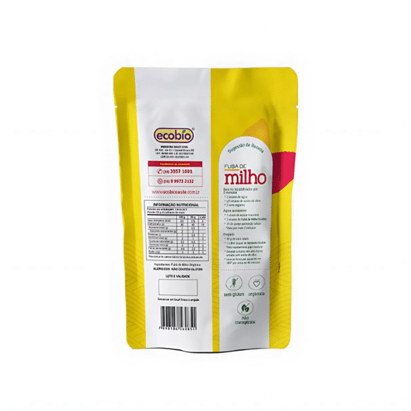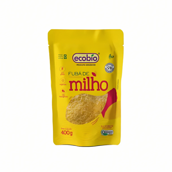 Fubá de Milho Orgânico Fabricante Ecobio Produto Não-Transgênico NÃO CONTÉM ALERGÊNICOS Peso Líquido: 400g